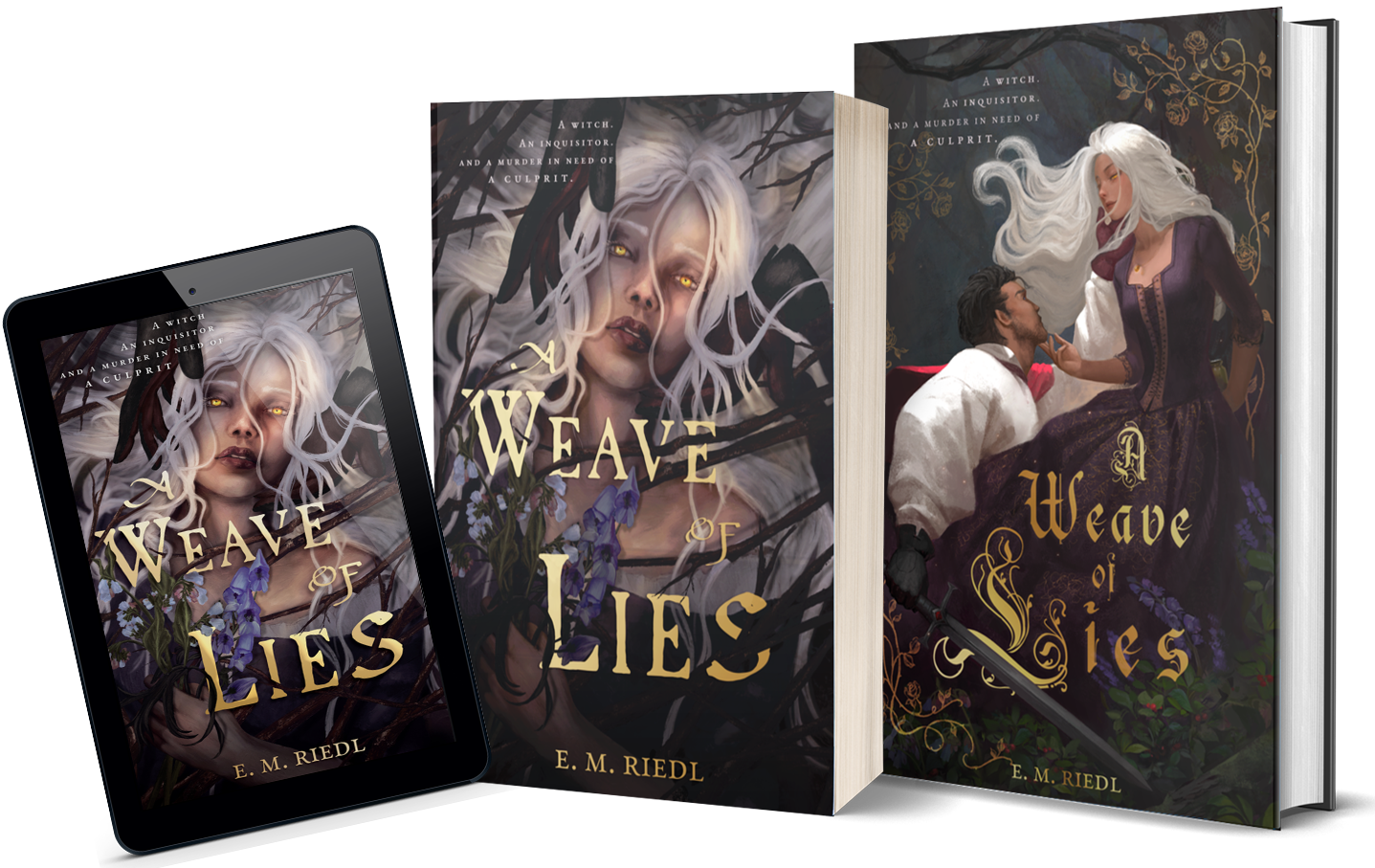 E. M. Riedl—or Emri for short—is a Canadian geek who always wondered why authors needed biographies. When not plagued by the existential crisis of having to write about herself in the third person, she spends her leisure time playing role-playing games (of the video and tabletop variety) and reading about obscure history facts far too late into the night.Ever since she started writing fantasy books at the inadvisable age of ten, Emri has been pursued by plot bunnies. She had successfully run away from them before completing anything—until now.Her time of blissful, daydreaming procrastination ended with A Weave of Lies, her debut standalone novel. Emri is now planning many more fantasy romance books set in the Woven Worlds universe.